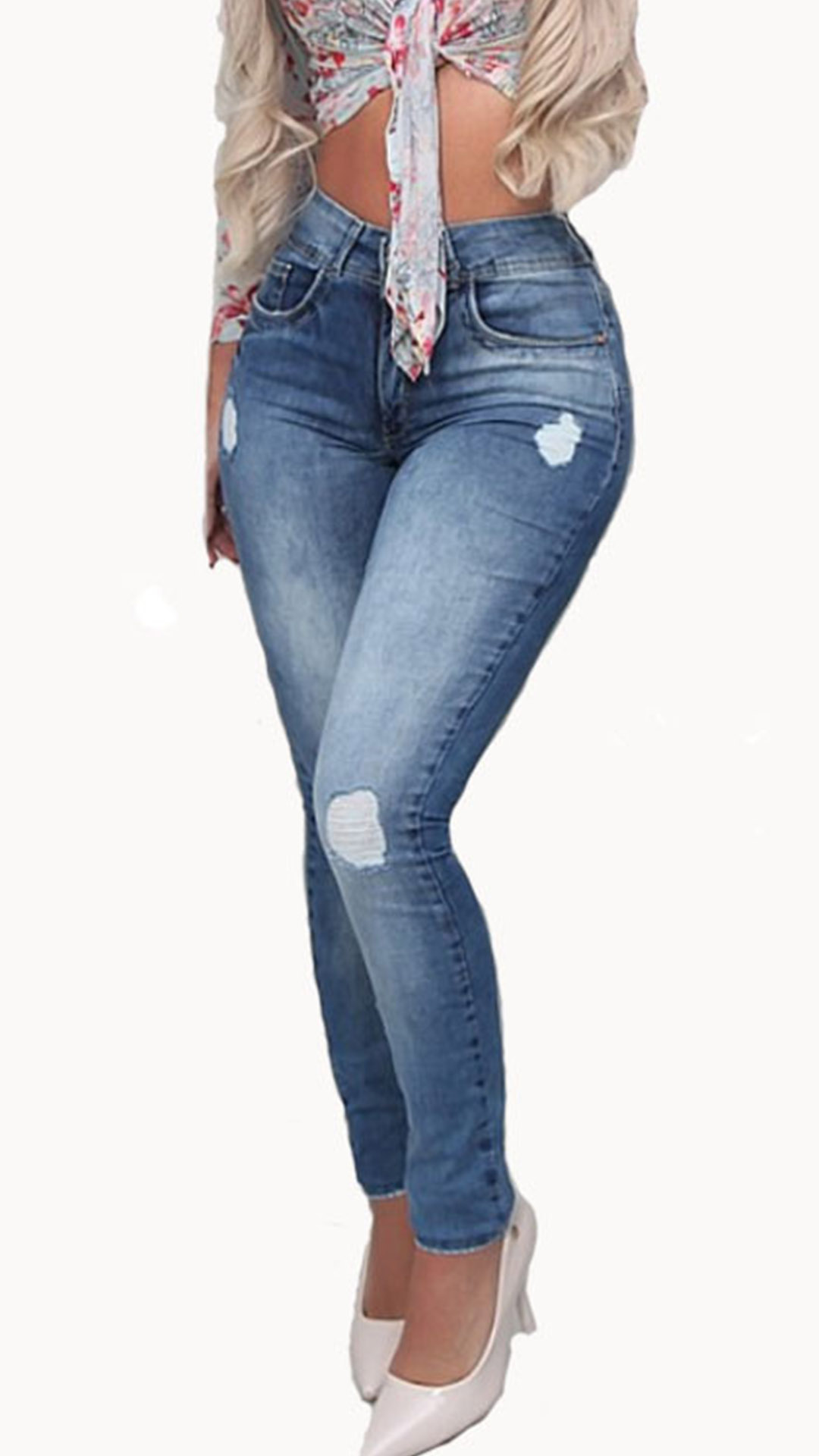 Fashion Solid Color Low-waist Skinny Pants Jeans