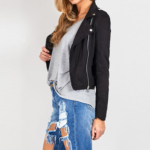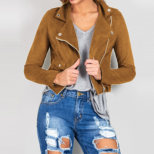 Featuring lapel, long sleeve and oblique zipper design, this irregular pocket design make it more