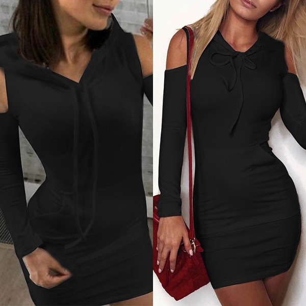 This dress comes with a classic yet stylish pure color tone,finished with long sleeve,hooded neck and slim fit