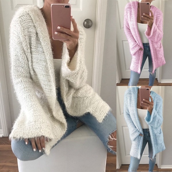 Take your knits in a new direction with this stunning hooded knit jacket! In a soft and cozy fabric,