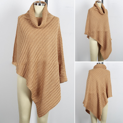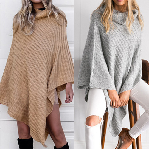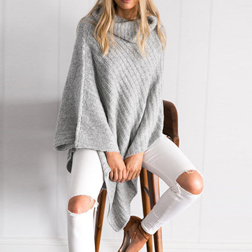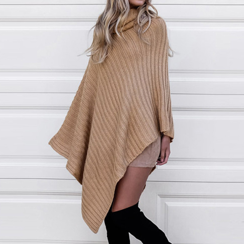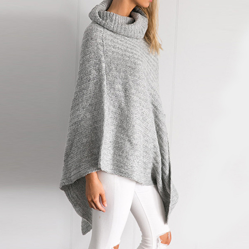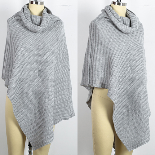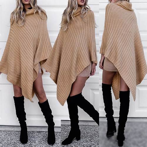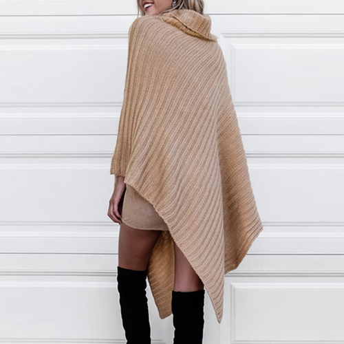 Fashion Solid Color Pile Collar Irregular Hemline Cloak