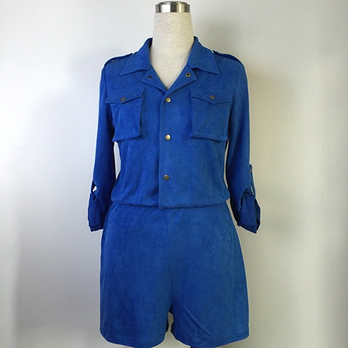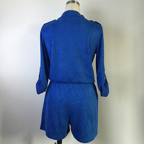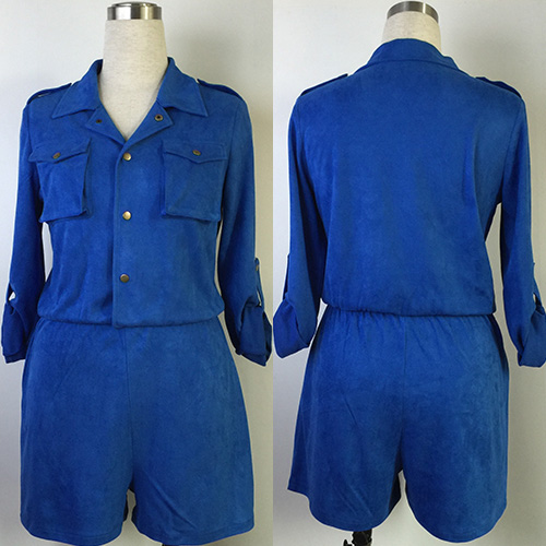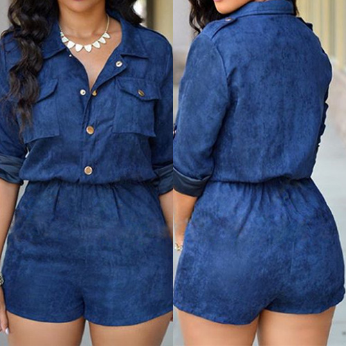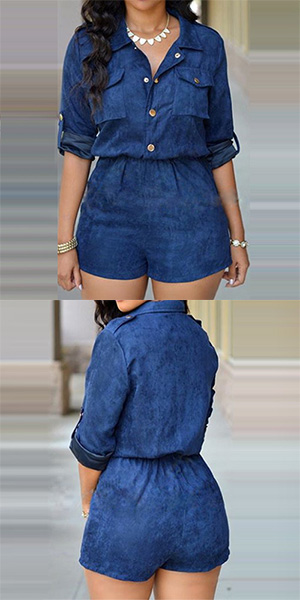 This romper it outfitted with a solid color,a basic collar and an elastic waist. Pair it