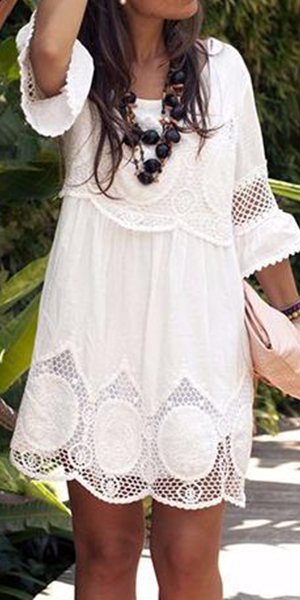 Show your beauty start from this dress! Solid color style, outfitted with round neck, half sleeve and lace