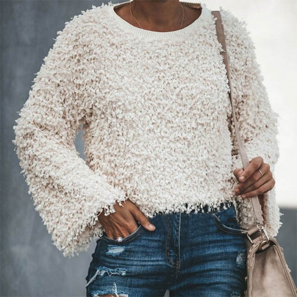 warm fabric for a cozy wearing, cut in a loose-fit, come with round neckline and long sleeve,