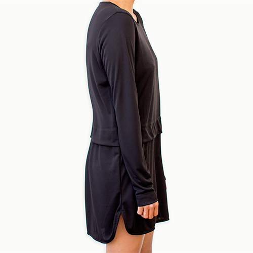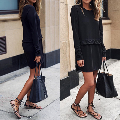 This dress is a perfect transition from daytime work to night out. Concise style, with solid color, round