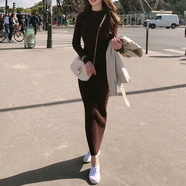 Enjoy your leisure time with this knitted dress.Its round-neck, long sleeve and solid color style, which can