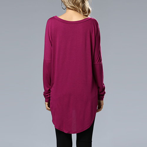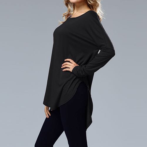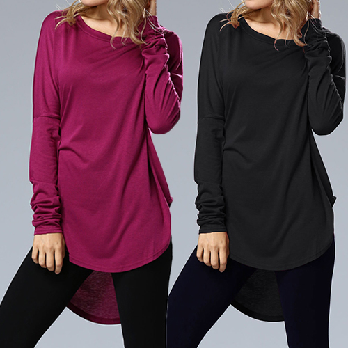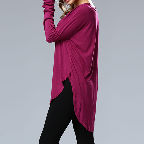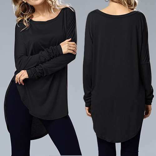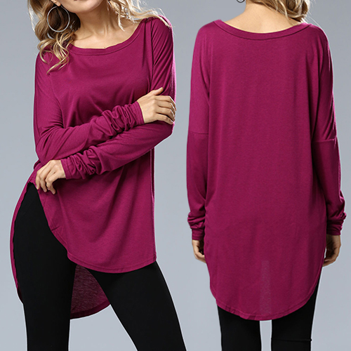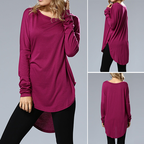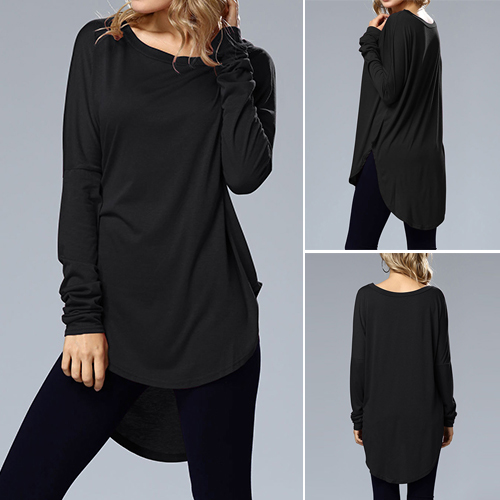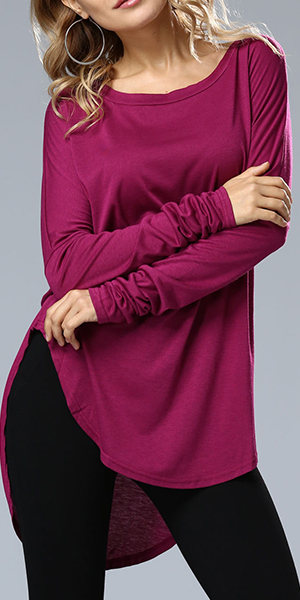 Look at this piece, boasting the super concise style, accompanied with round neck, long sleeve, high-low