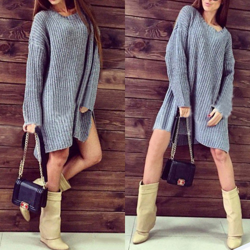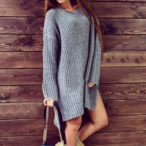 long sleeve and side slit design; this soli-colored dress would give you a stylish and comfortable