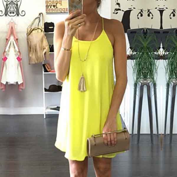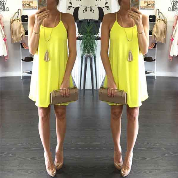 Stylish and effortlessly fashionable, this dress is yearning for a place in your wardrobe. Sling style,with a bright yellow tone,