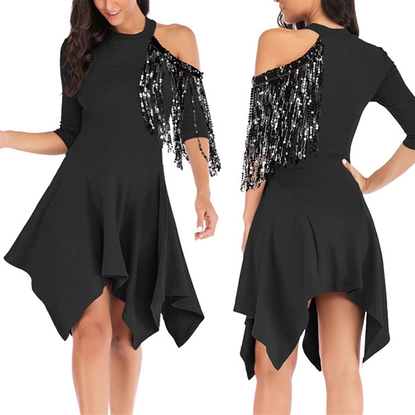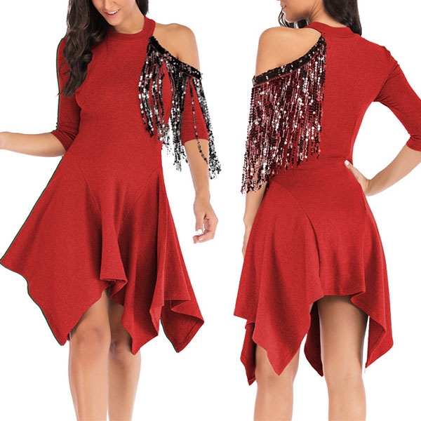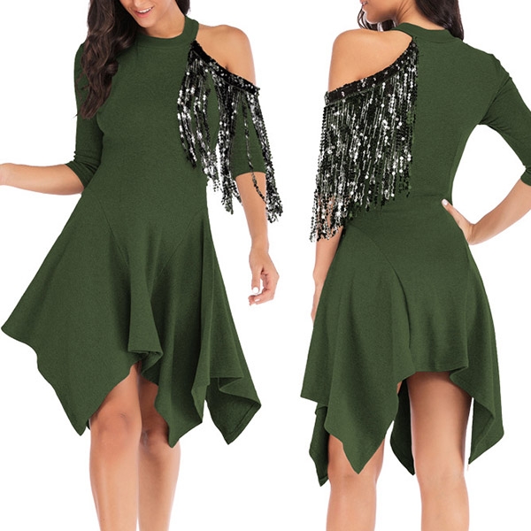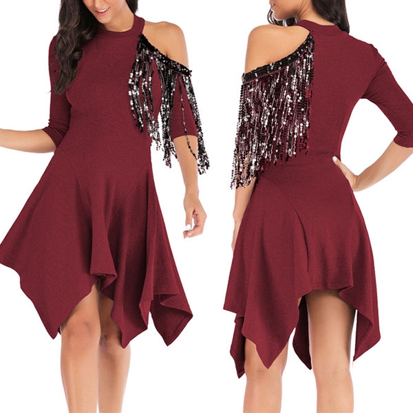 Then this dress would help you achieve it.The dress in solid color style,round-neck, slim fit and off-shoulder design.