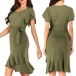 Solid color tone design makes it look simple,generous and elegant. And the lotus sleeve and ruffle hem