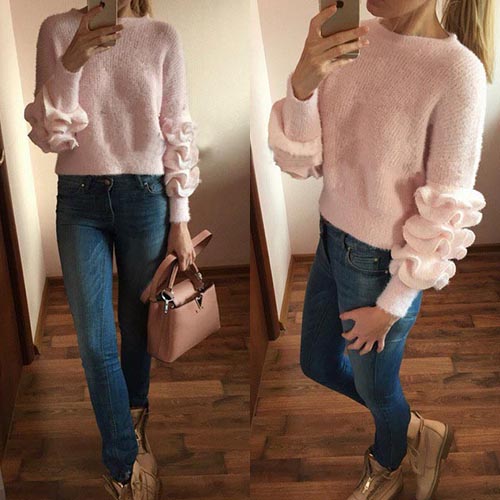 this solid-colored sweater looks so cute and distinctive. Warm and cosy material can keep you comfy all