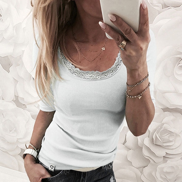 Solid Color style,with lace spliced design,stylish yet feminine. And its cozy fabric and slim fit silhouette can