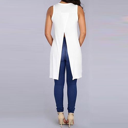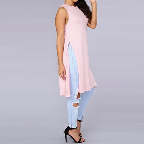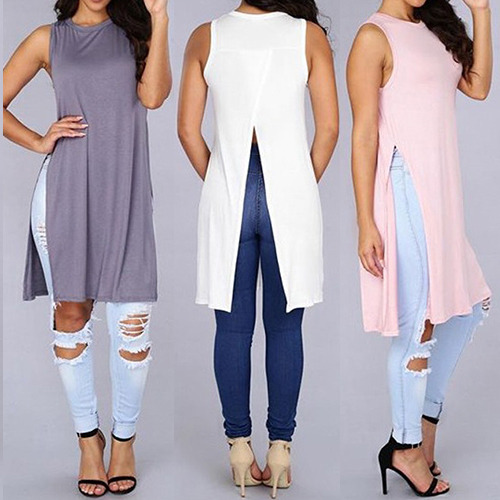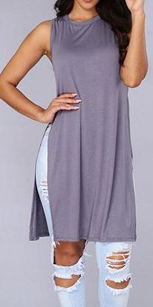 outfitted with round neck, sleeveless and slit hem design, casual, simple and trendy. A loose