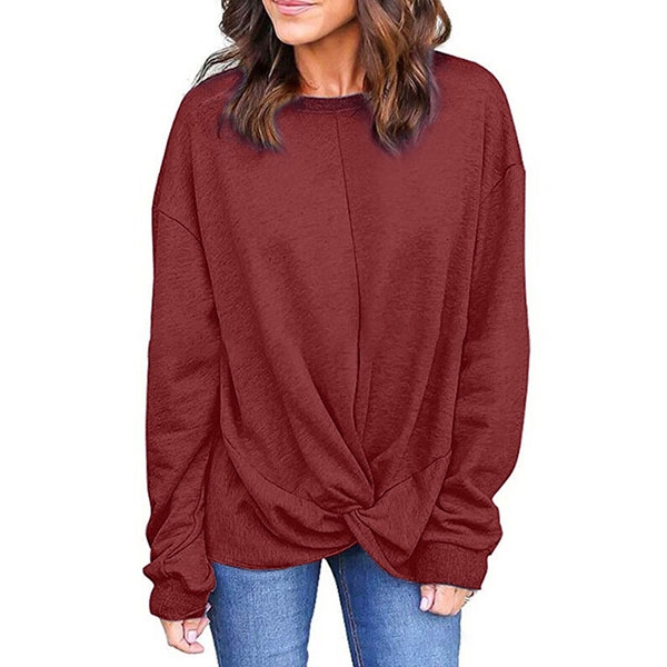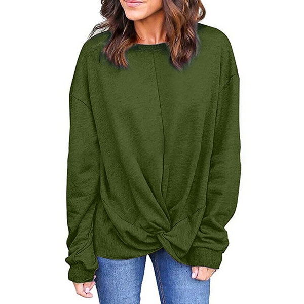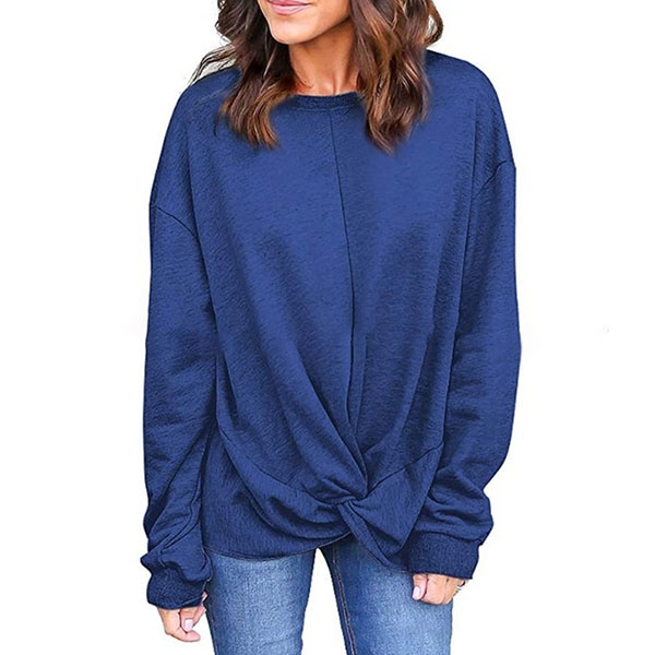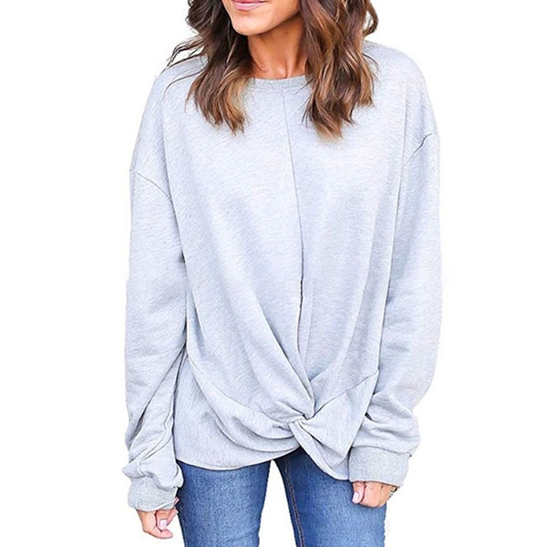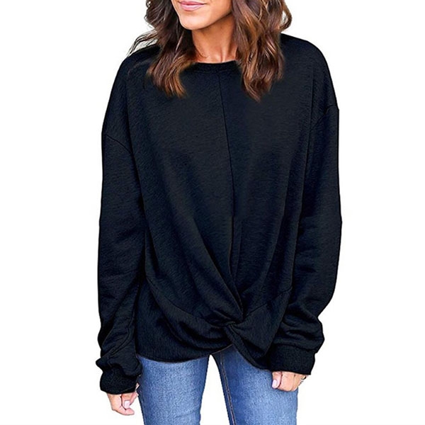 As for a casual,relaxed yet stylish style,you can rest easy if you have this sweatshirt in your team. Boasts a solid color,the twisted hem design is