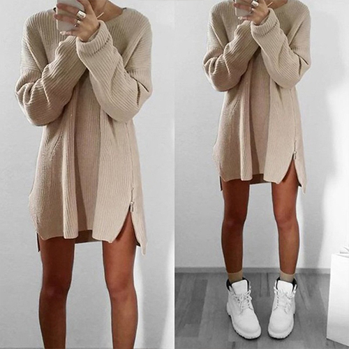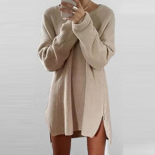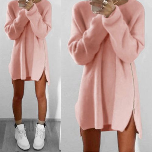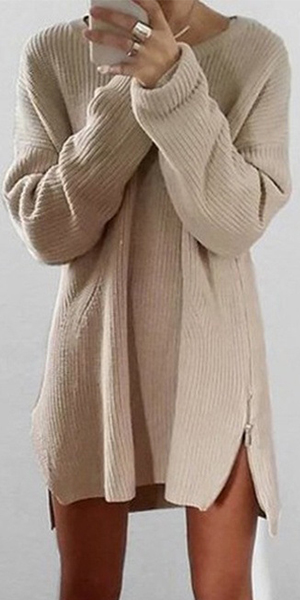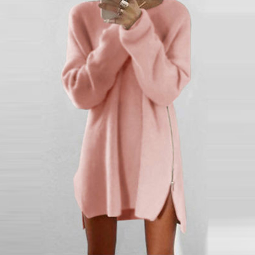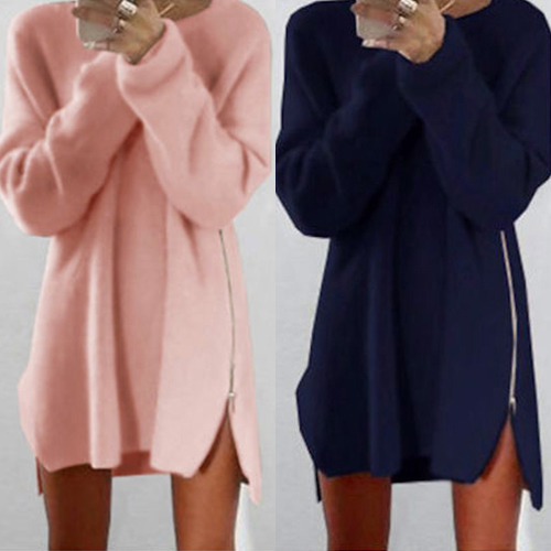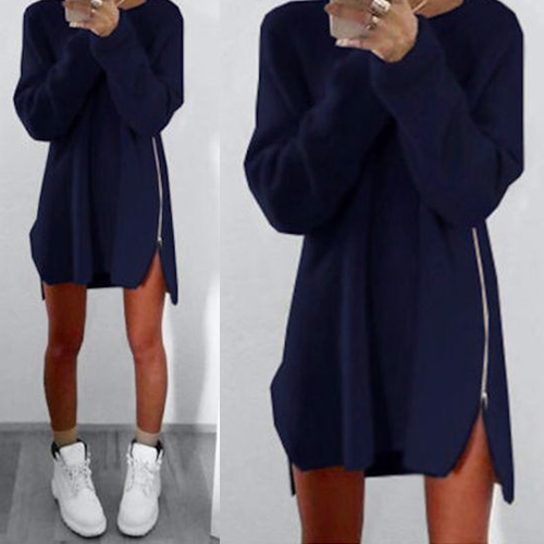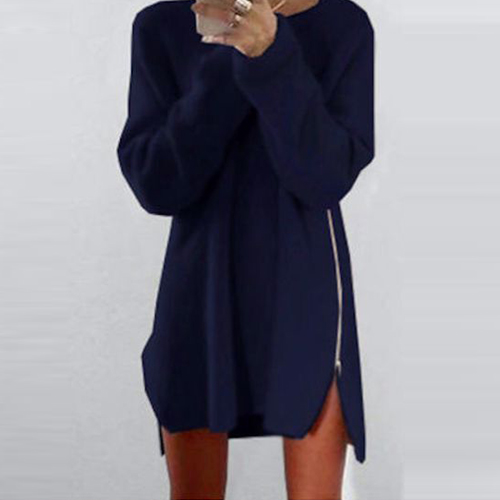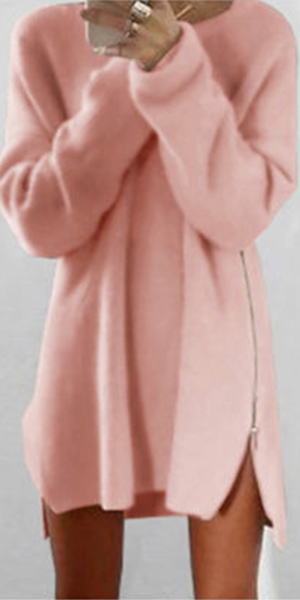 This dress looks quite fashion because it is pure color and it is styled with a side-zipper design. What's more, this dress is designed with a round