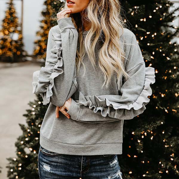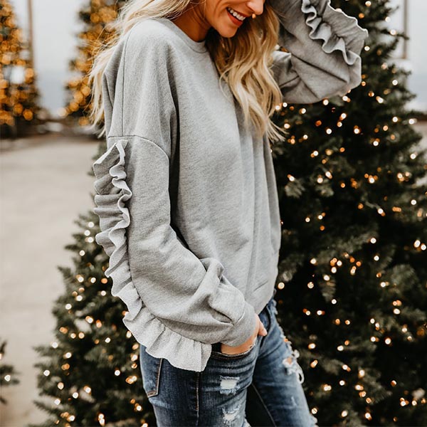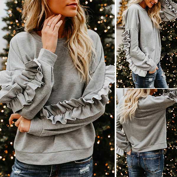 solid color,the ruffle design at the sleeve part is the most distinctive design,while its soft and breathable