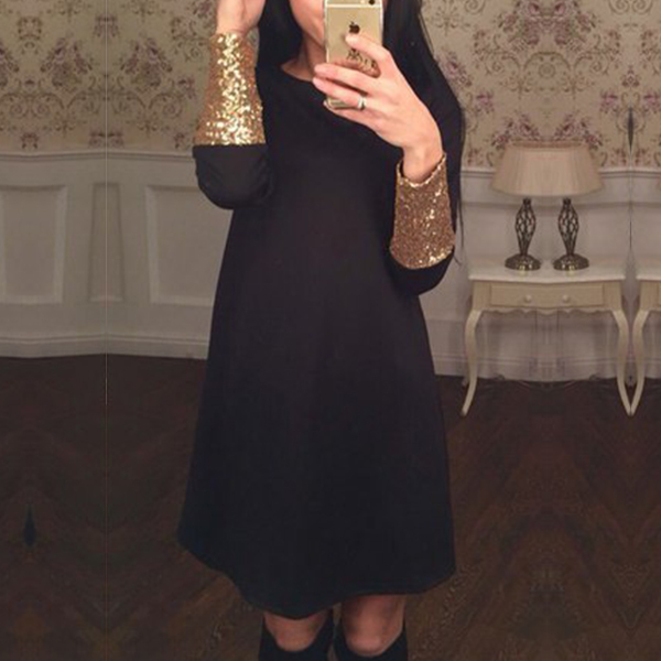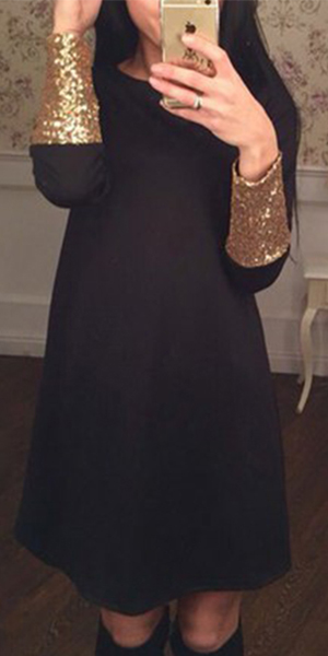 design,this dress can ensure you a comfortable day. Sleeve part with sequin