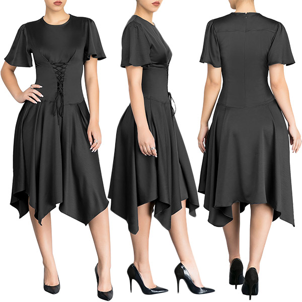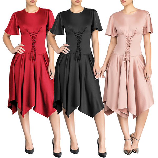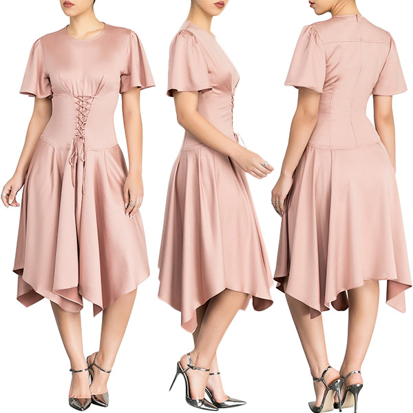 elegant and stylish image. The lace-up design at waist part will better accentuate your perfect figure.