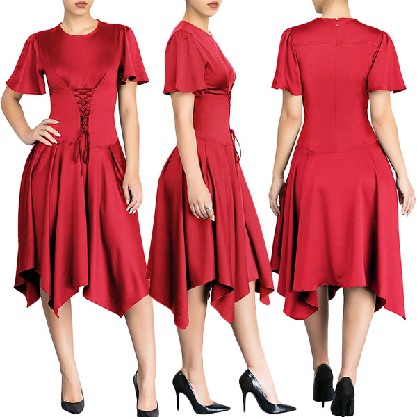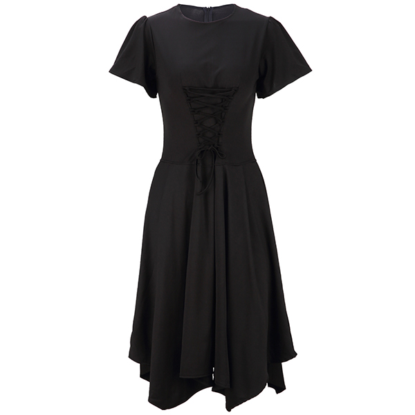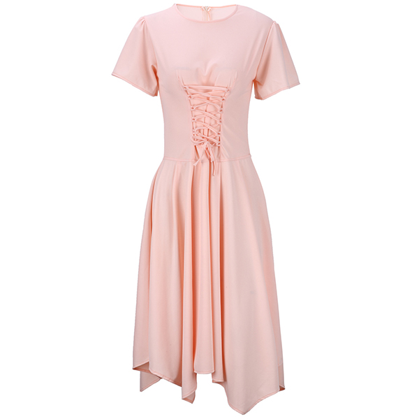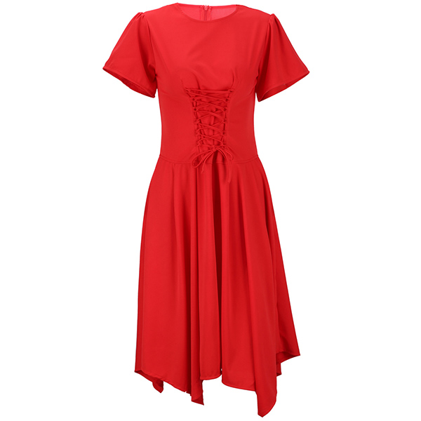 color,finished with short sleeve,round neck and an irregular hem,this dress knows how to portray your