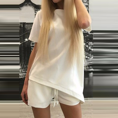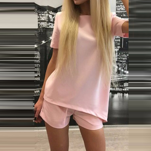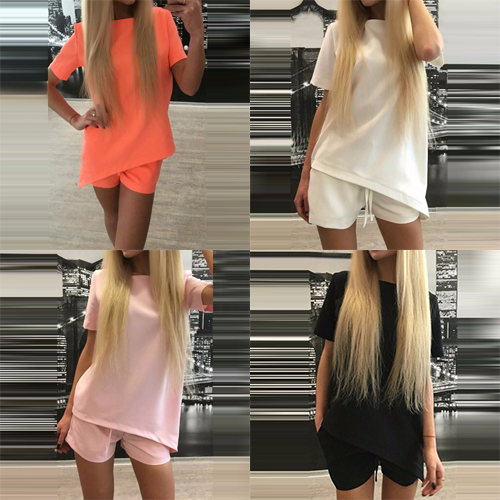 choice. Solid color style,including a short sleeve t-shirt and a high waist shorts,and t-shirt with backless