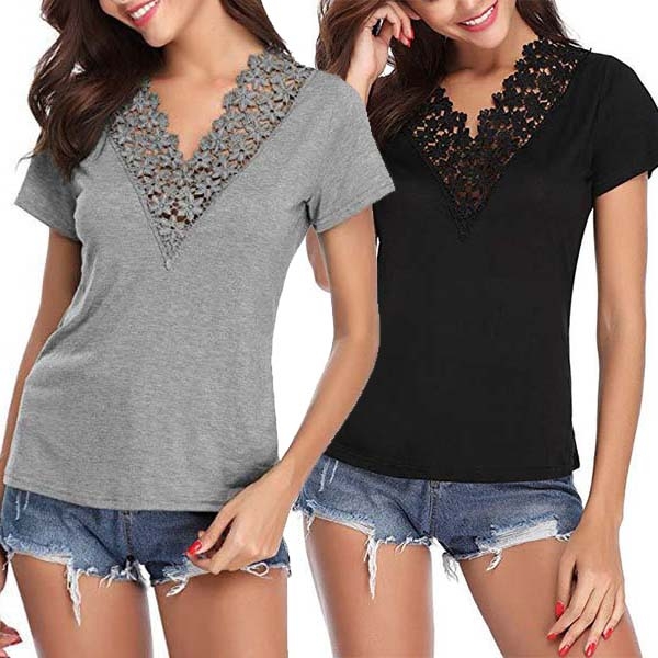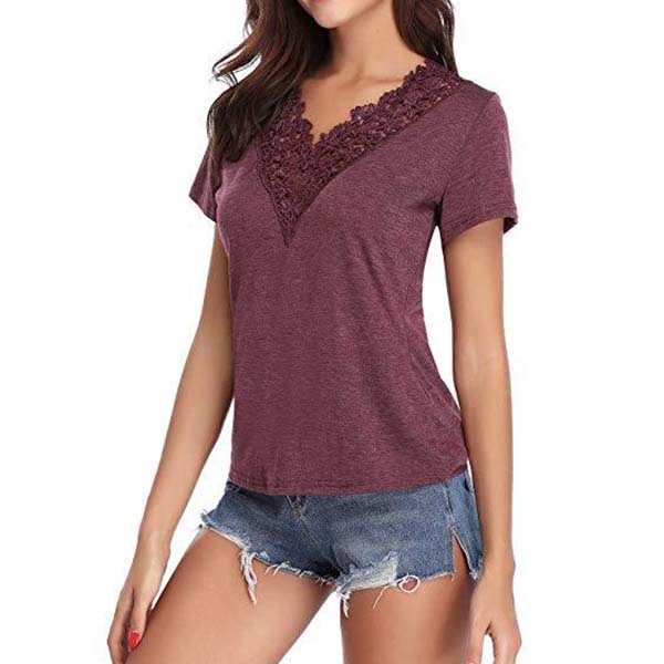 and v-neck design,simple in design style. Meanwhile,the lace spliced design will further enrich the design structure.