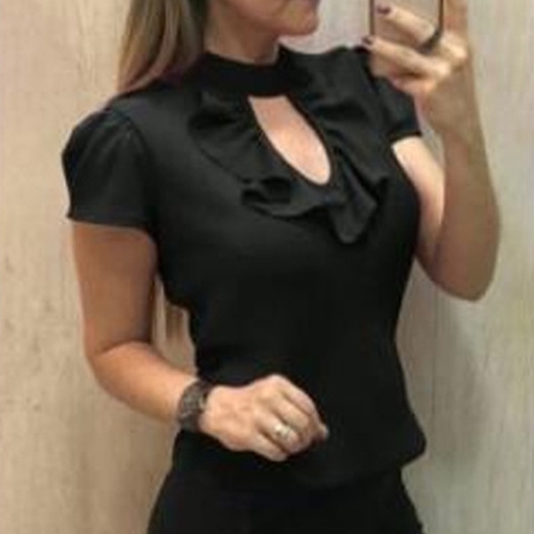 the hollow out and ruffle design at the neckline part make this piece look sexy and attractive.