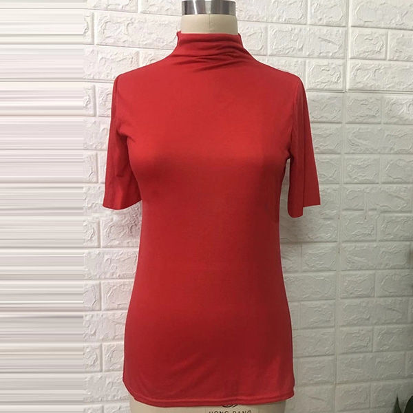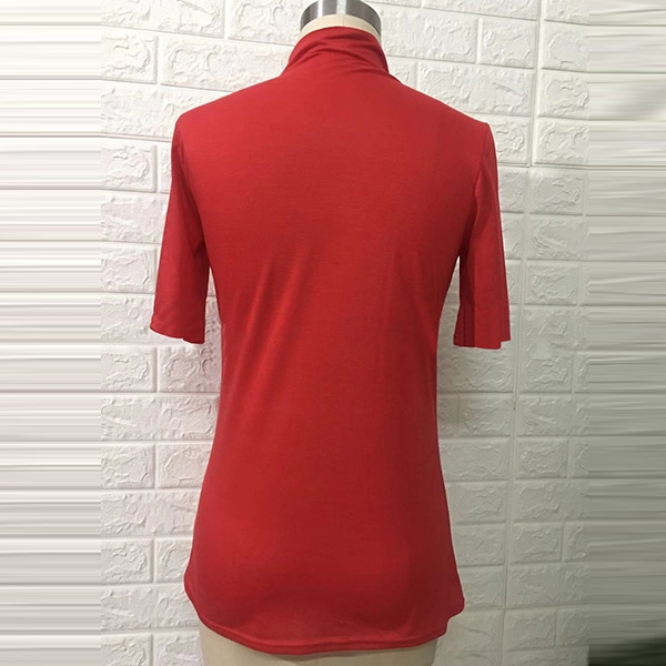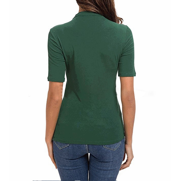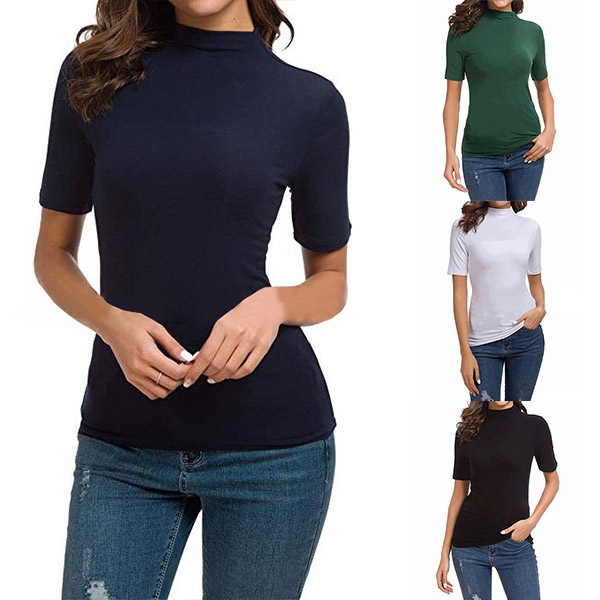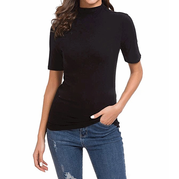 Coming with a solid color,finished with short sleeve,mock neck and a fit silhouette,