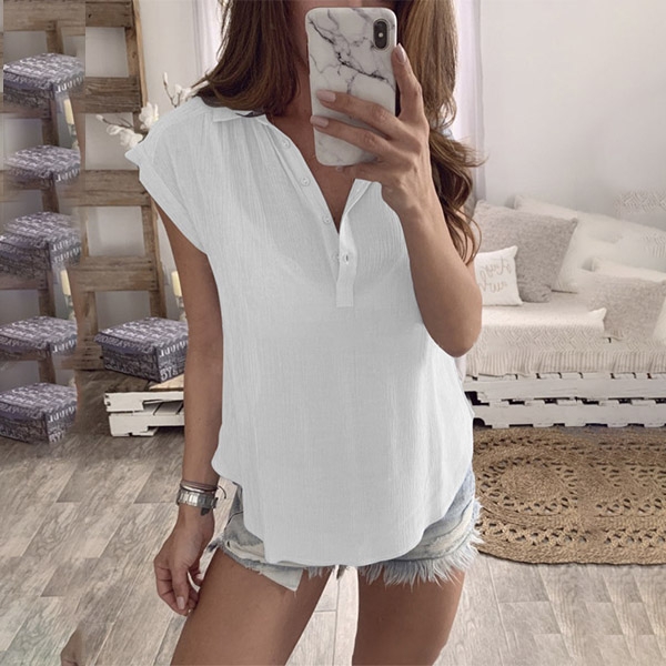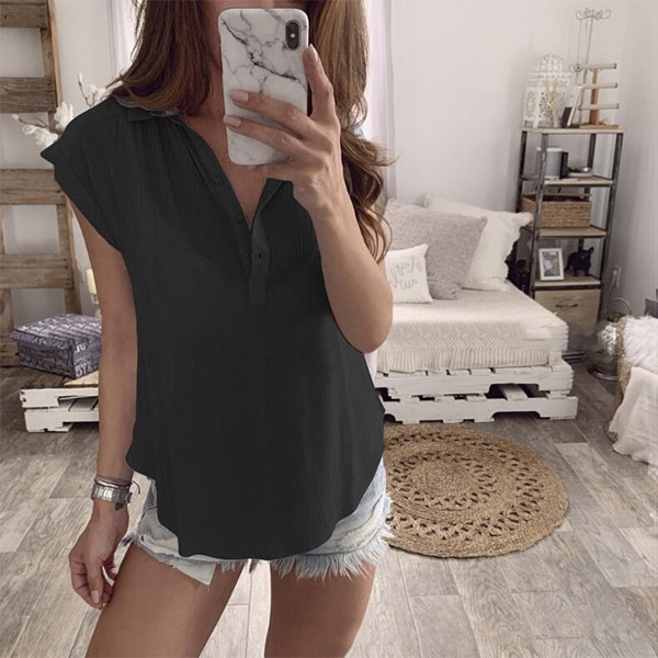 This blouse comes with a solid color,which makes it look simple yet generous. Finished with short