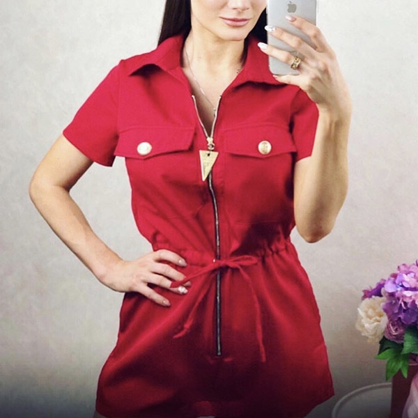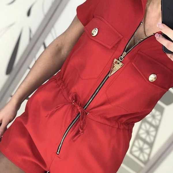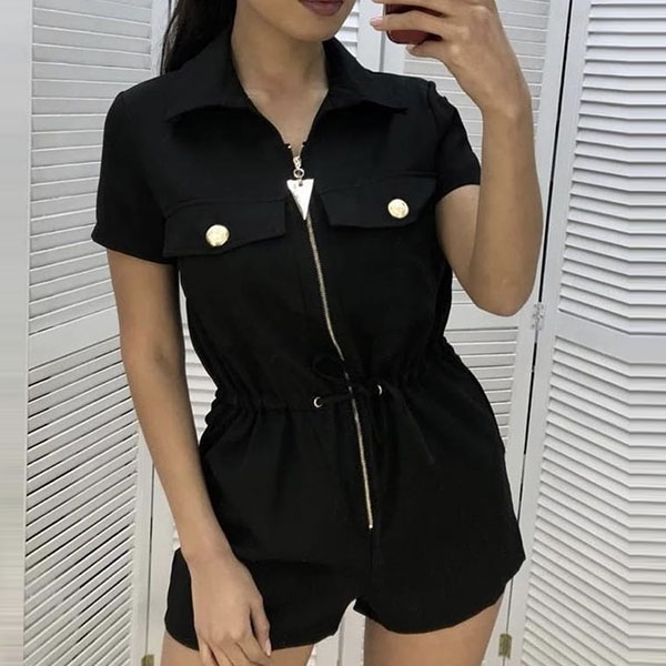 Make your wardrobe have an update by adding this romper. It boasts a solid color,finished with short sleeve,