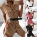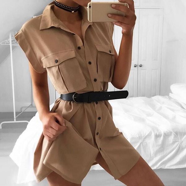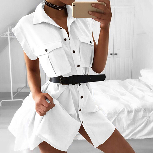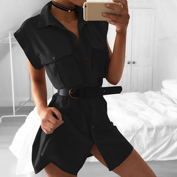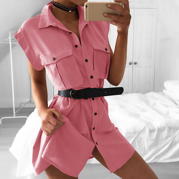 Boost your daily style with this shirt dress! Solid color style,the short sleeve,POLO collar and single-breasted