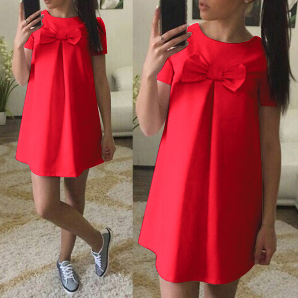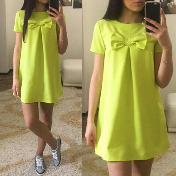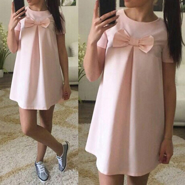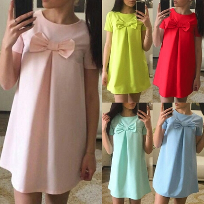This dress comes with a solid color,finished with short sleeve,round neck and a loose silhouette,which of course
