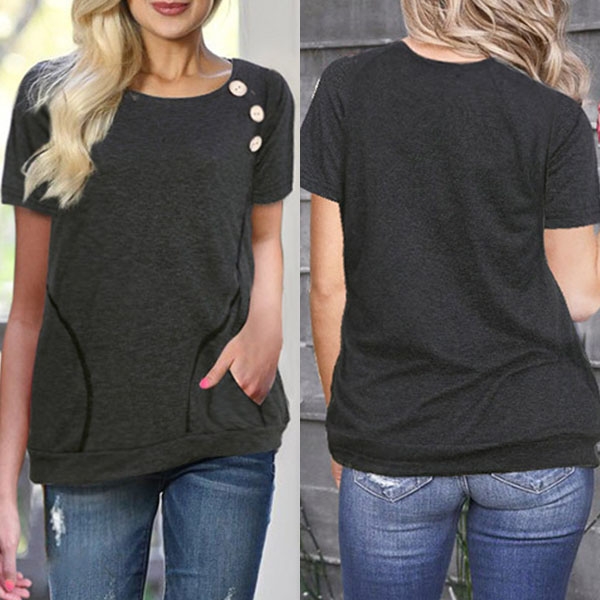 Boasts a solid color,the buttons design at the shoulder part will will further enhance its charm.