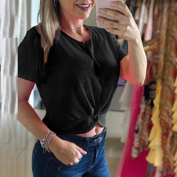 Fashion Solid Color Short Sleeve Round Neck Crop Top