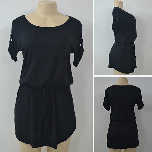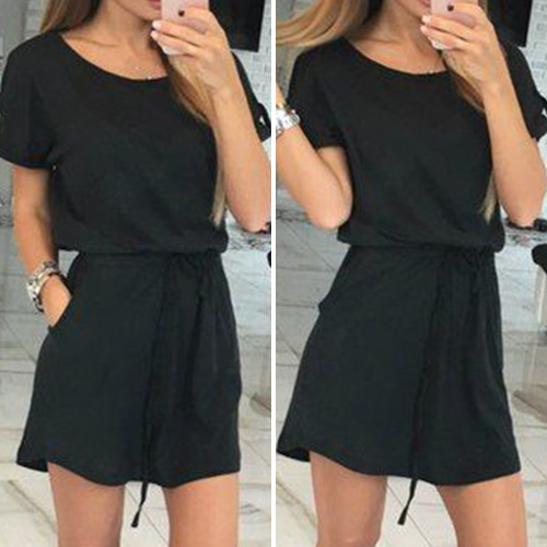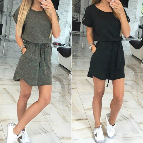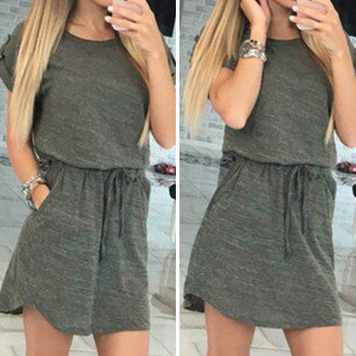 Solid color style,outfitted with short sleeve,round neck,a drawstring waist and crated from soft and cozy fabric,