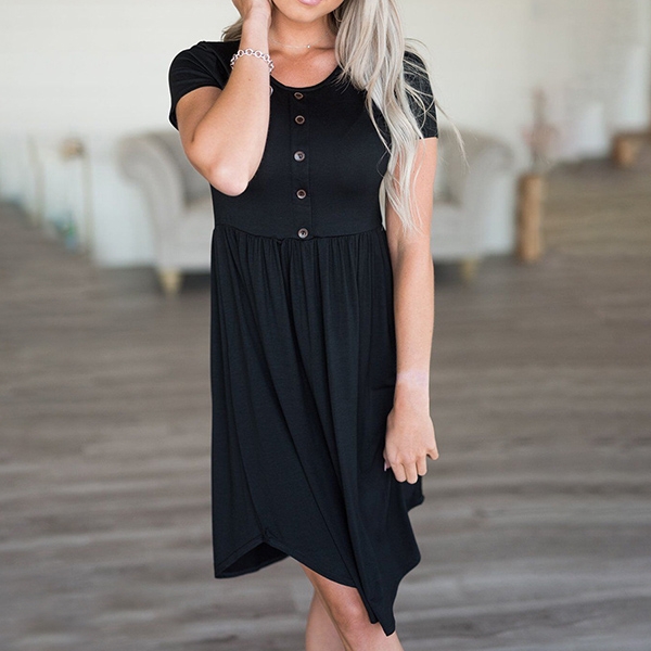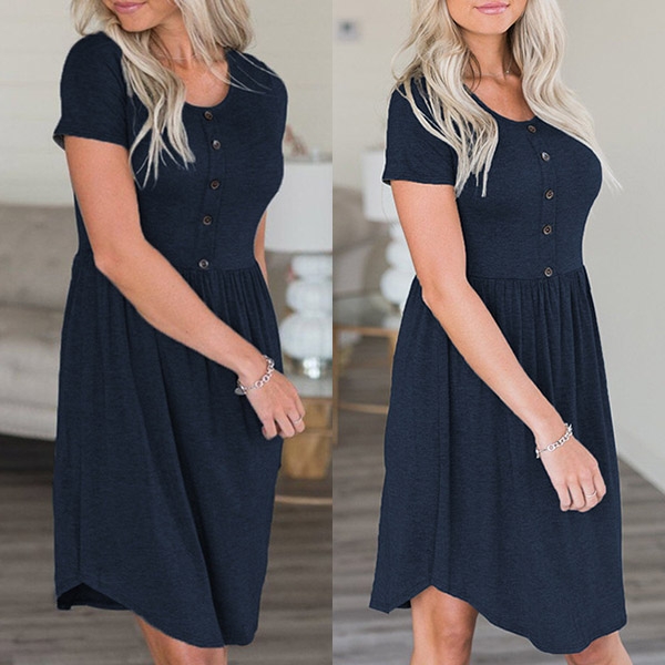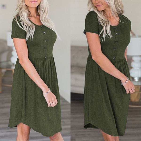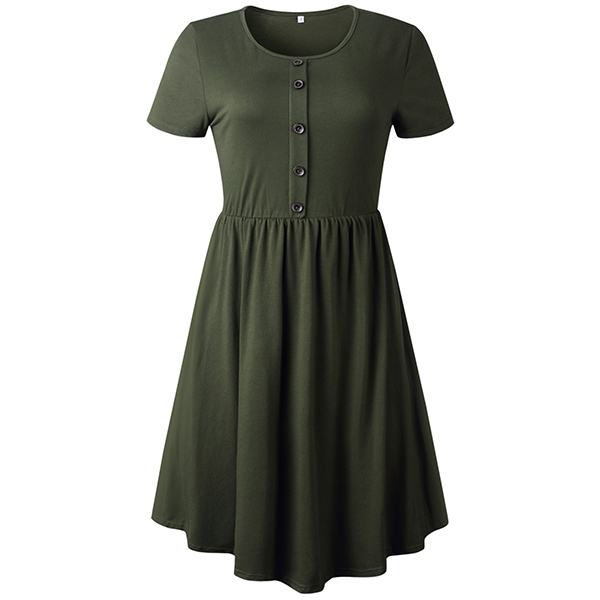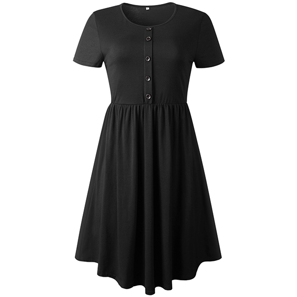 finished with short sleeve,round neck and frount-button design,this dress also can promise you a