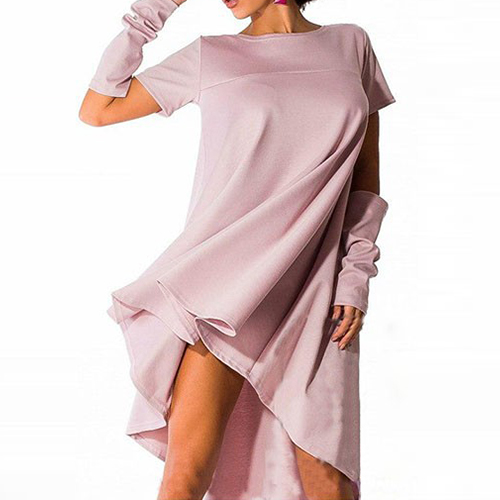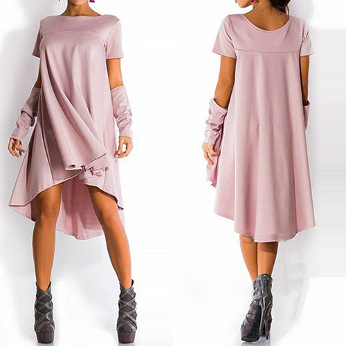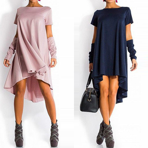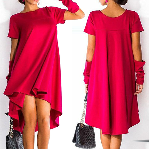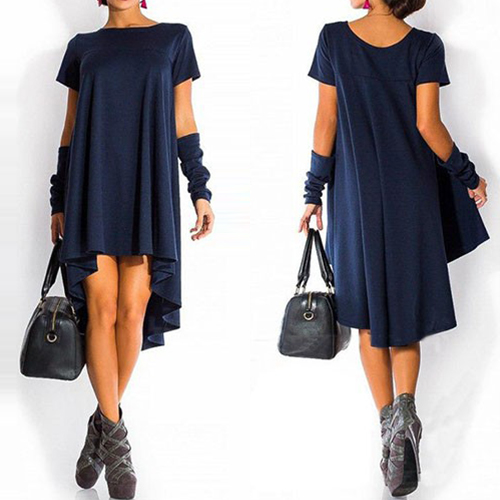 Solid color style,outfitted with round neckline and high-low hem design,chic and stylish. Dress it up with your favourite sandals.