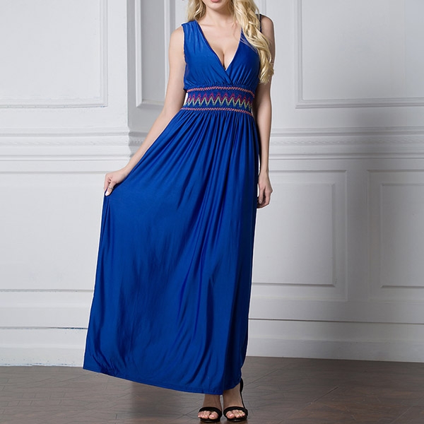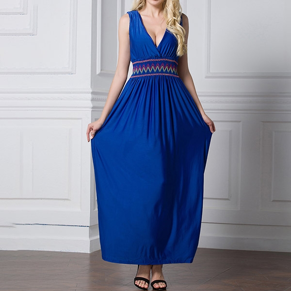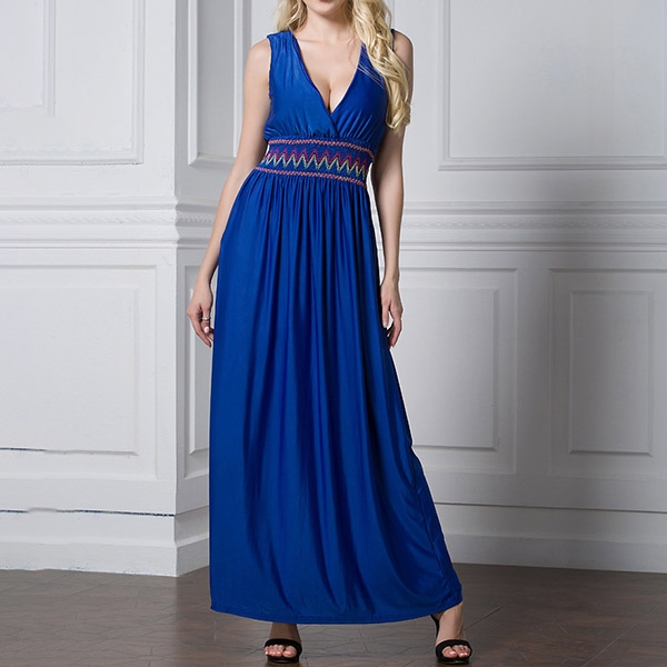 Sexy Backless Deep V-neck Sleeveless High Waist Maxi Dress