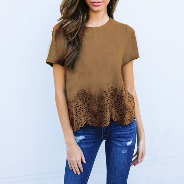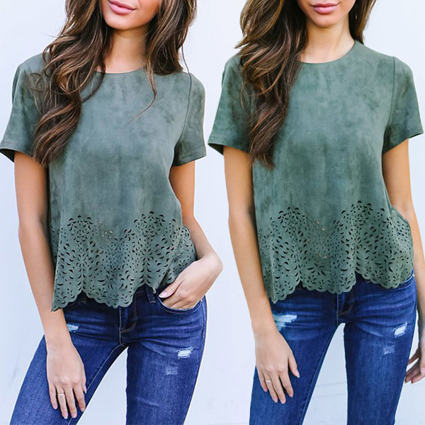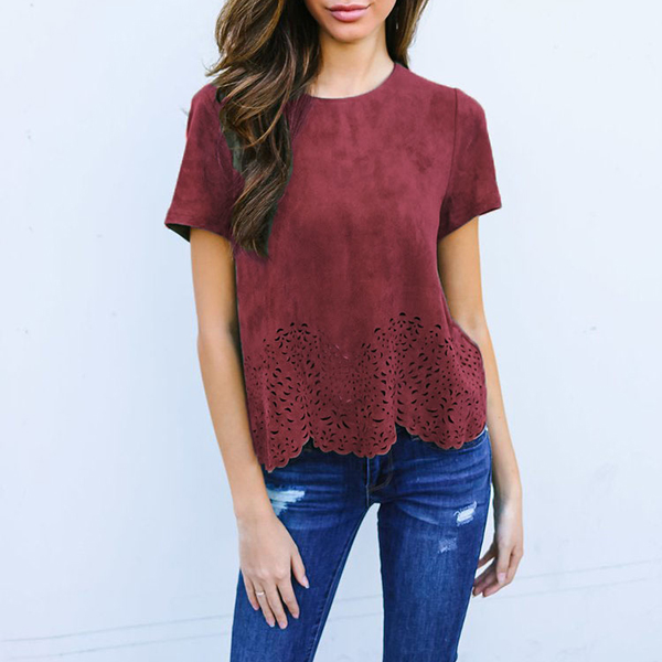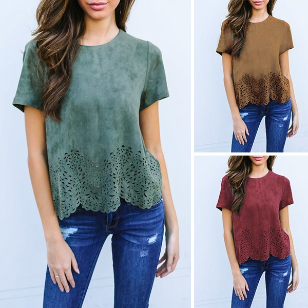short sleeve,round neck and hollow out hem,this wonderful piece is sure to give you a comfortable day with its