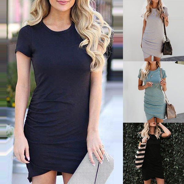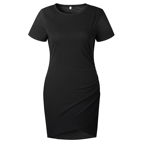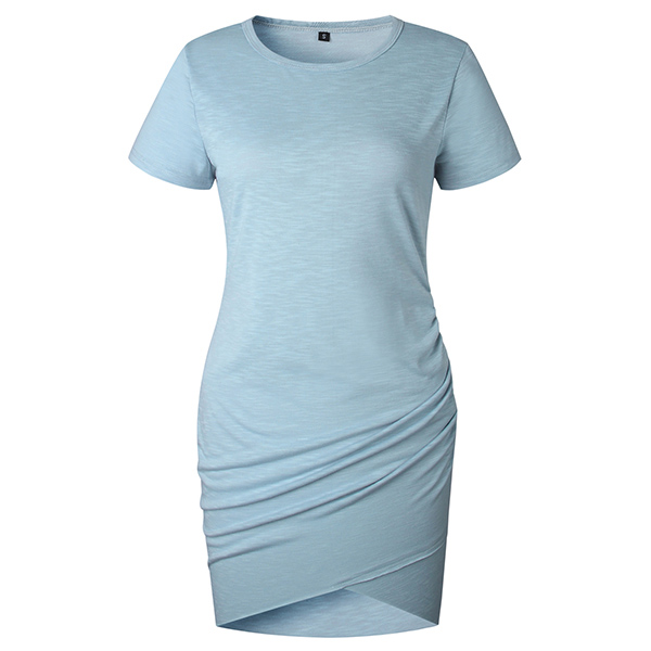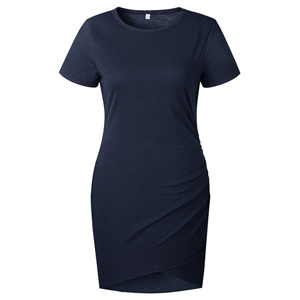 finished with short sleeve,round neck,an irregular hem and a fit silhouette,this dress also can highlight your