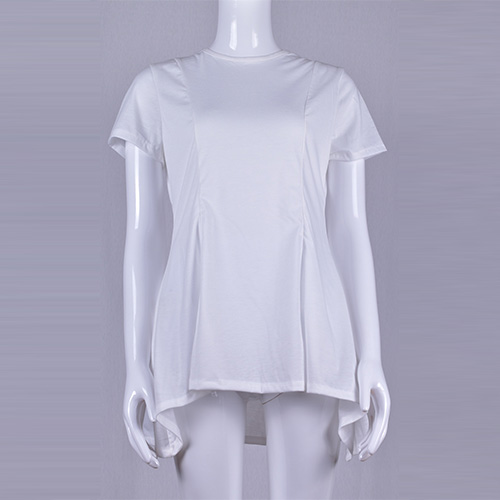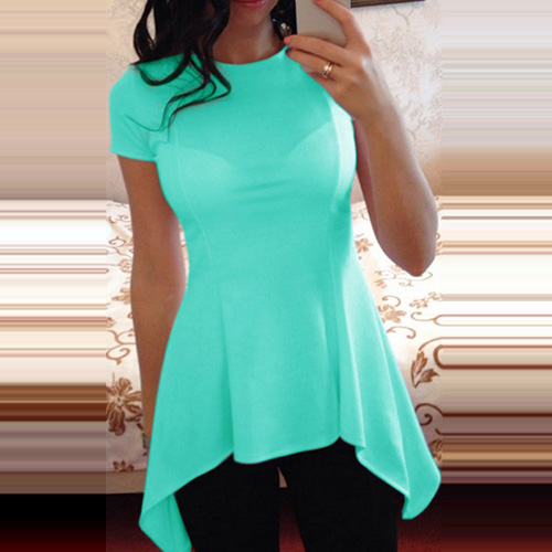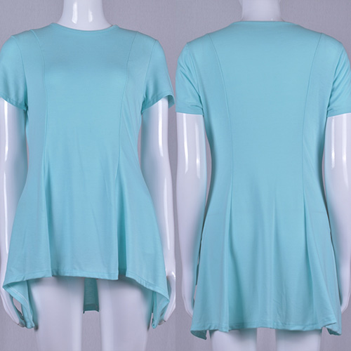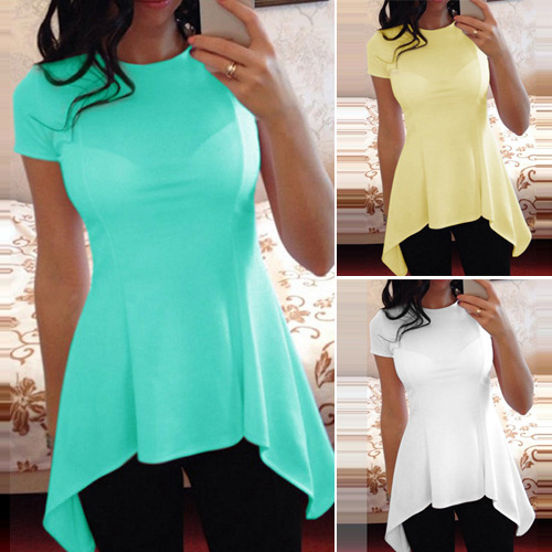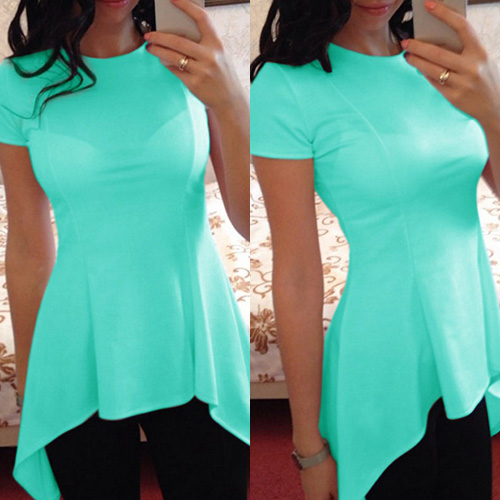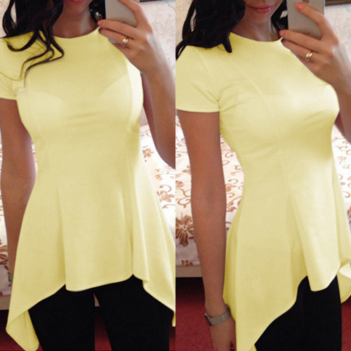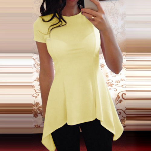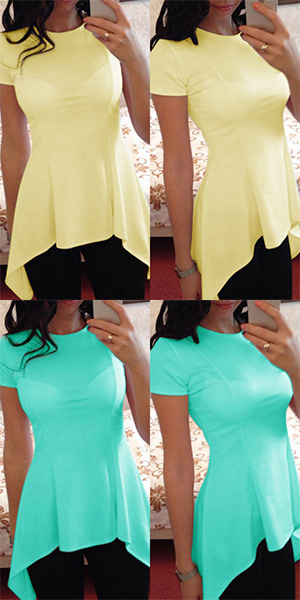 Solid color style,with short sleeve,round neck and irregular hem design,chic,stylish yet cozy.
