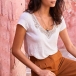 This t-shirt comes with a classic yet stylish white tone,finished with short sleeve,round neck and lace