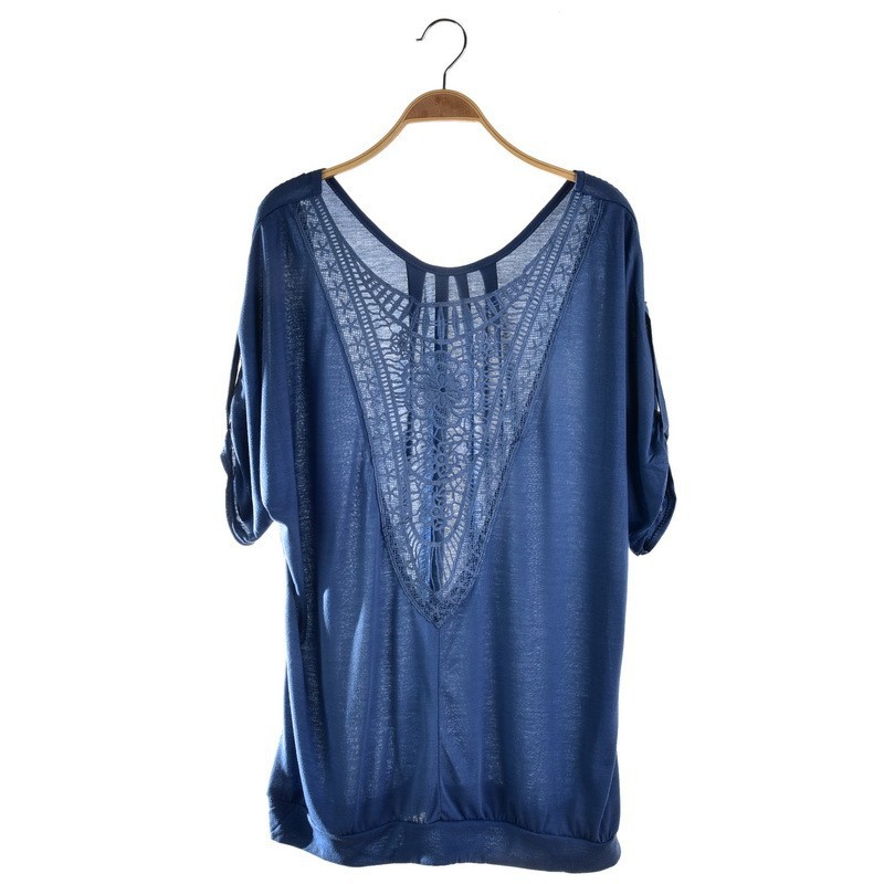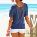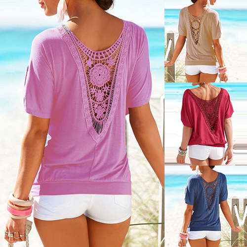 Maintain a casual and laid-back style on your casual days with this t-shirt. Solid color style,with short sleeve,round neck,lace