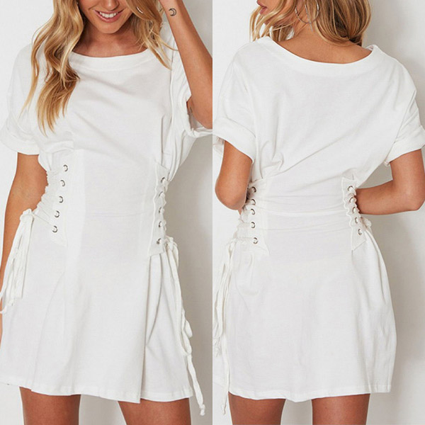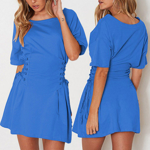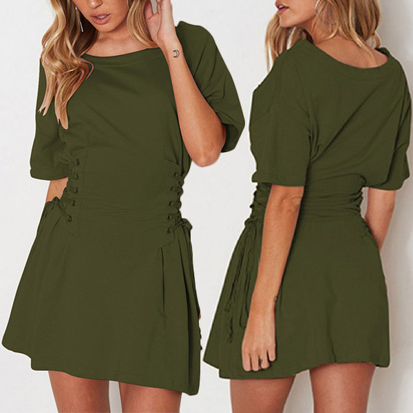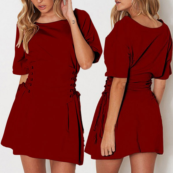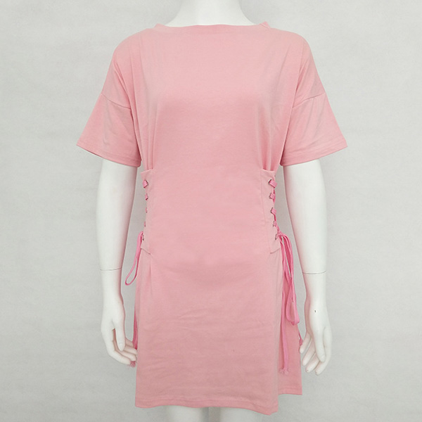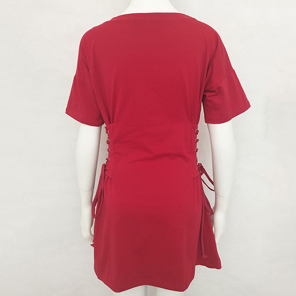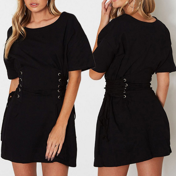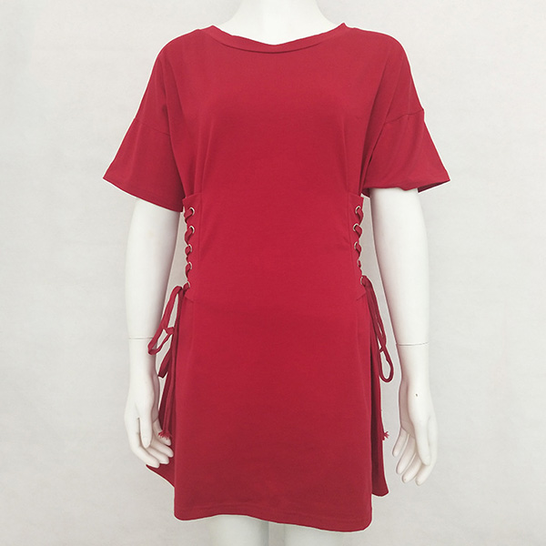 like short sleeve,round neck and chic design like lace-up design at the waist part make this piece look so
