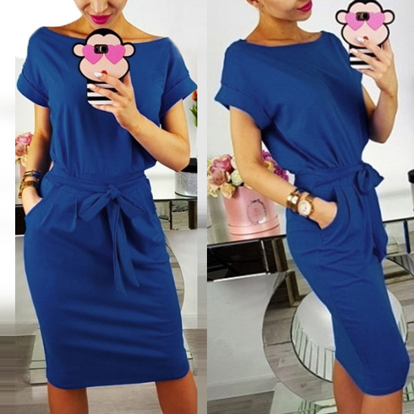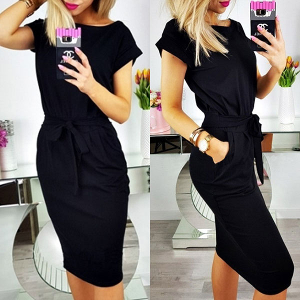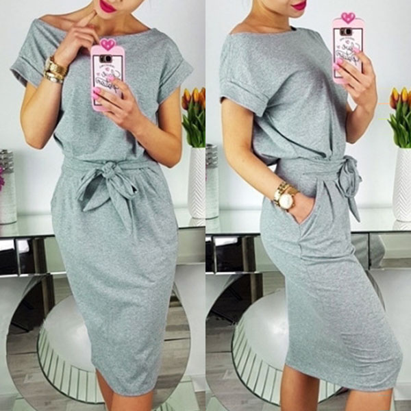 Exude a sense of elegant femininity by donning this dress. Comes with a solid color,finished with short sleeve,