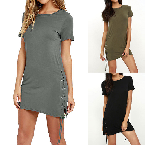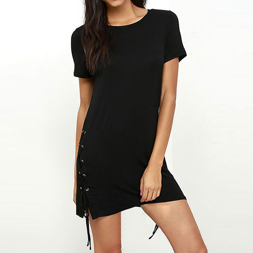 Stay cozy yet stylish in this simple dress, Solid color style,designd with short sleeve,round neck and a lace-up hem,
