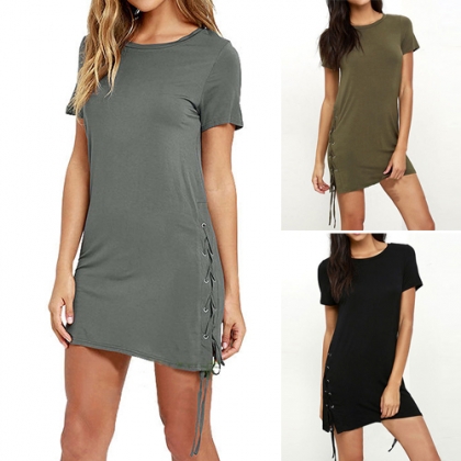 Wanna keep cozy yet stylish? Then we suggest you choosing this dress. Solid color style,with short sleeve,