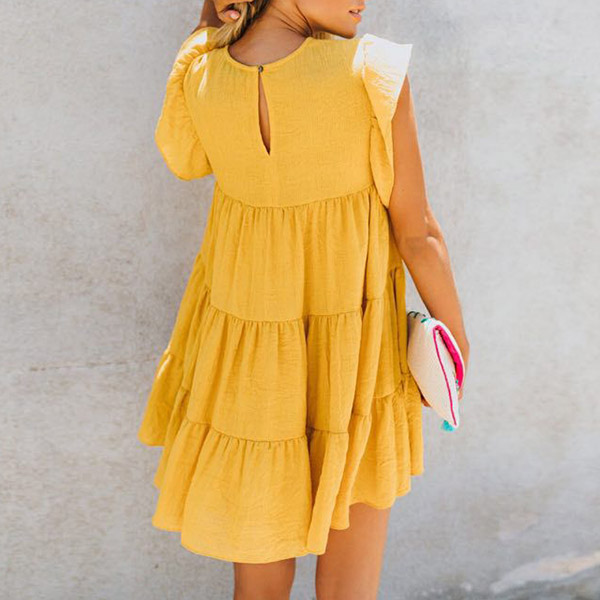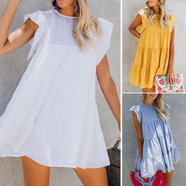 For your weekend strolling,this cozy and relaxed dress would strike your mind. Solid color style,with short