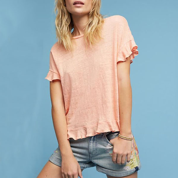 Easy to achieve for a cozy and laid-back style through this t-shirt. Boasts a sweet pink tone,accompanied with short sleeve,