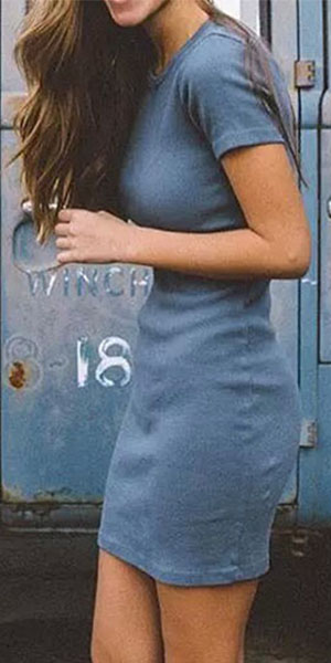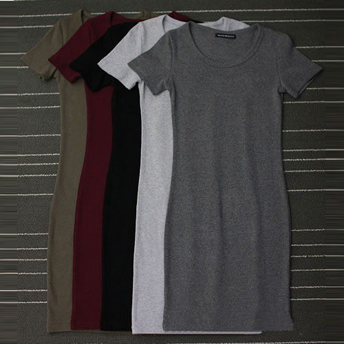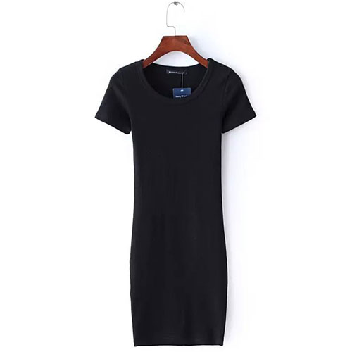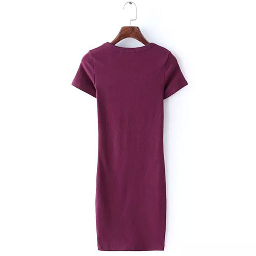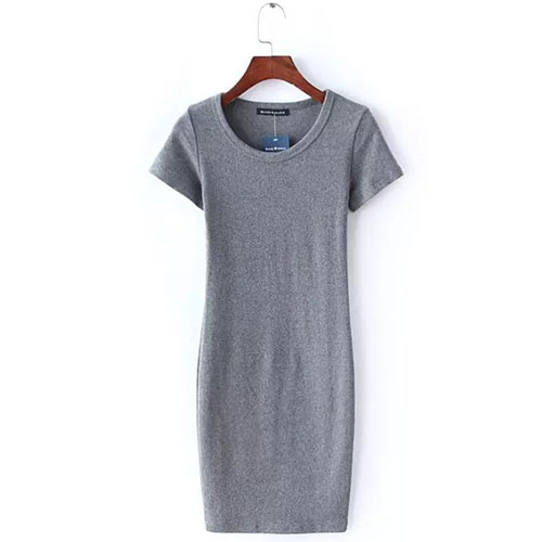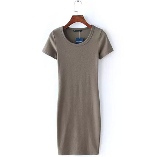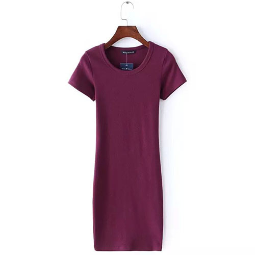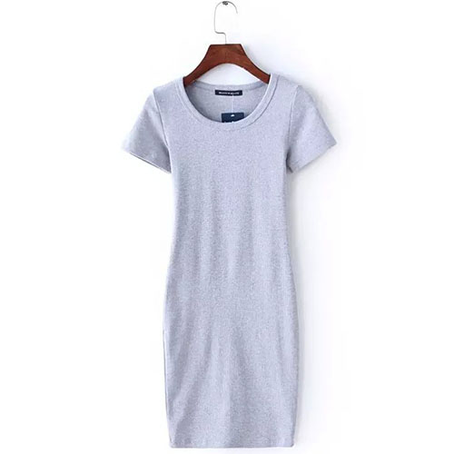 Fashion Solid Color Short Sleeve Round Neck Slim Fit Dress
